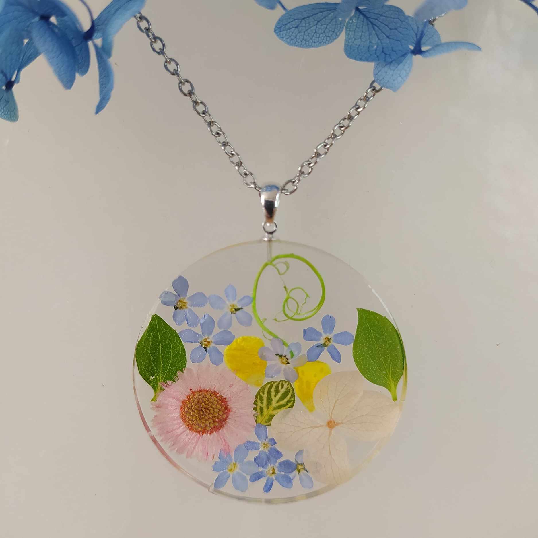 Luční květy. Průměr přívěsku 4,1 cm. Řetízek chirurgická ocel, délka 45 cm. Jinou délku řetízku (40,50,60 cm) uveďte v poznámce na konci objednávky.