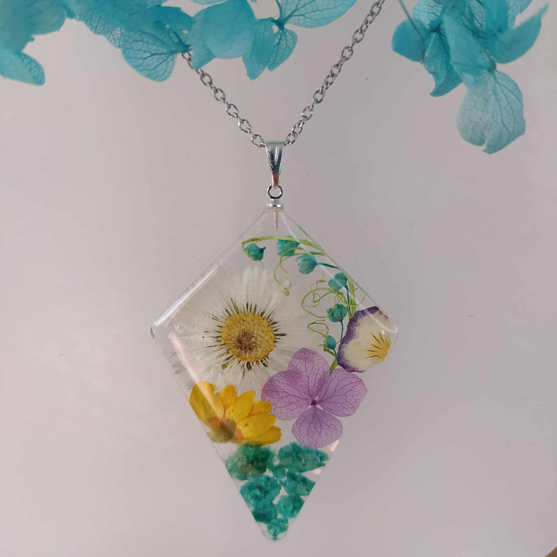 Luční kvítí. Velikost přívěsku 5,5×3,7 cm. Řetízek chirurgická ocel, délka 45 cm. Jinou délku řetízku (40,50,60 cm) uveďte v poznámce na konci objednávky.
